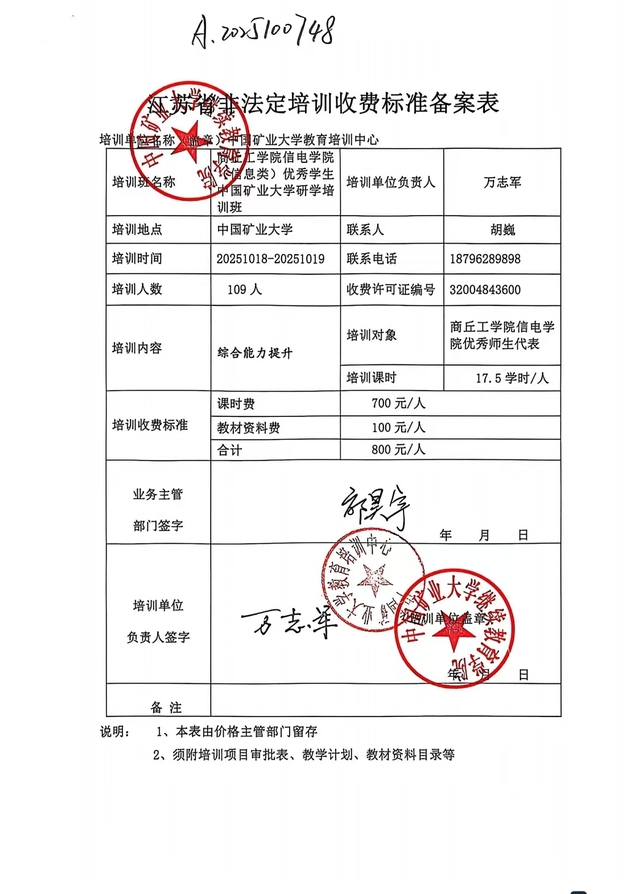 A.2025100748-商丘工学院信电学院(信息类)优秀学生中国矿业大学研学培训班