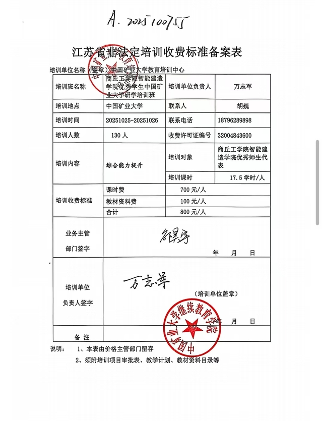 A.2025100755-商丘工学院智能建造学院优秀学生中国矿业大学研学培训班