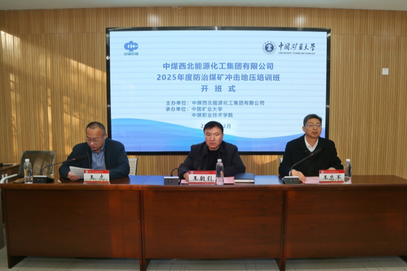 12月1日上午,中煤西北能源化工集团有限公司2025年度防治煤矿冲击地压培训班在中国矿业大学文昌校区举行。中煤西北能源化工集团有限公司副总工程师王朝引、中国矿业大学继续教育学院副院长王虎出席开班式。开班式由中煤职业技术学院副院长王忠军主持。
