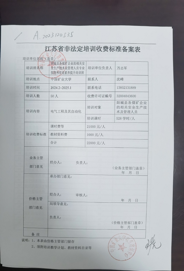 A2023120535-阳城县各煤矿企业的相关安全生产技术及管理人员专业技能和管理素养提升培训班
