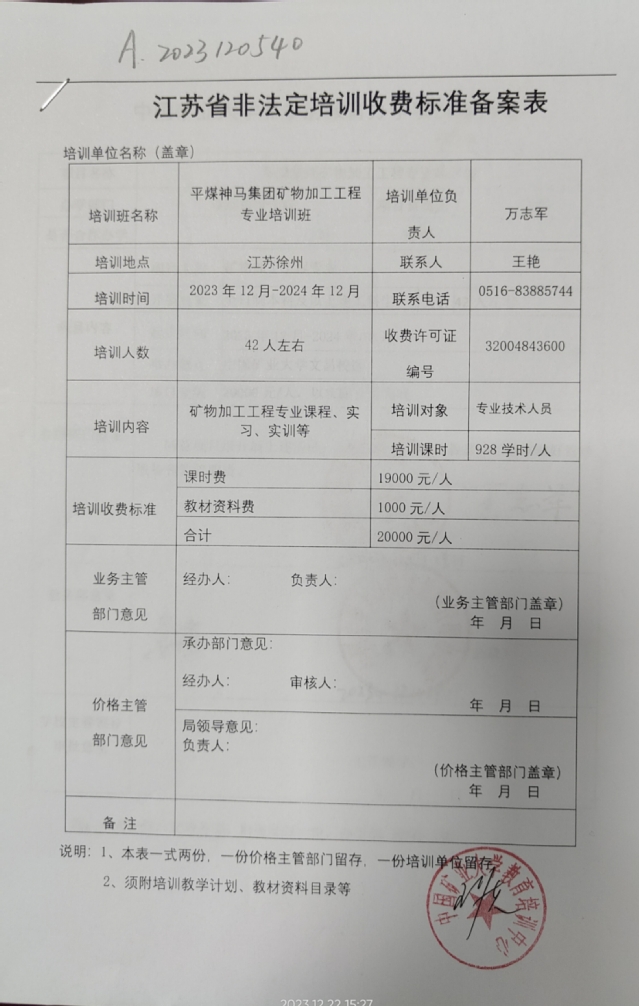 A2023120540-平煤神马集团矿物加工工程专业培训班