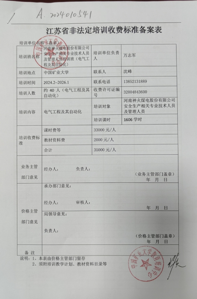 A2024010541-河南神火煤电股份有限公司安全生产相关专业技术人员及管理人员培训班(电气工程及其自动化)