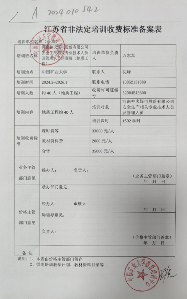 A2024010542-河南神火煤电股份有限公司安全生产相关专业技术人员及管理人员培训班(地质工程)