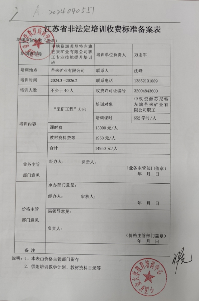 A2024040551-中铁资源苏尼特左旗芒来矿业有限公司职工专业技能提升培训班