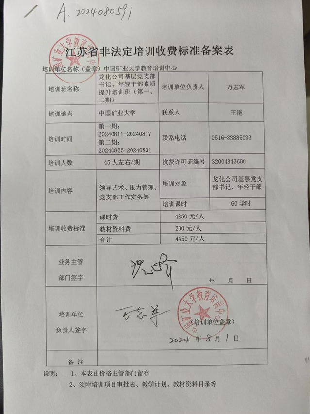A2024080591-龙化公司基层党支部书记、年轻干部素质提升培训班(第一、第二期)