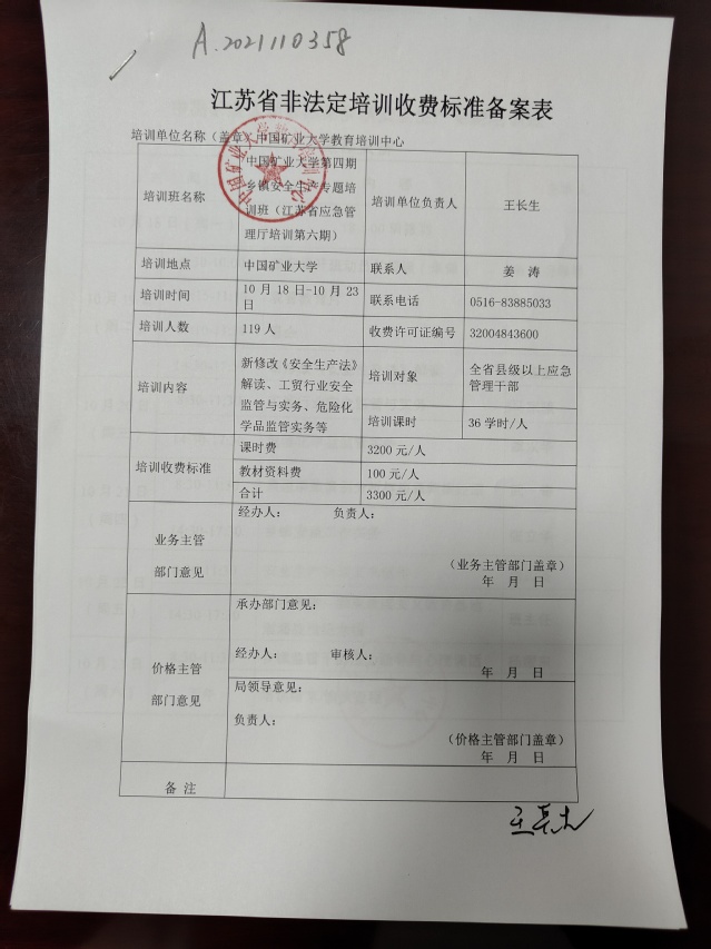 A20211103358-中国矿业大学第四期乡镇安全生产专题培训班(江苏省应急管理厅培训第六期)