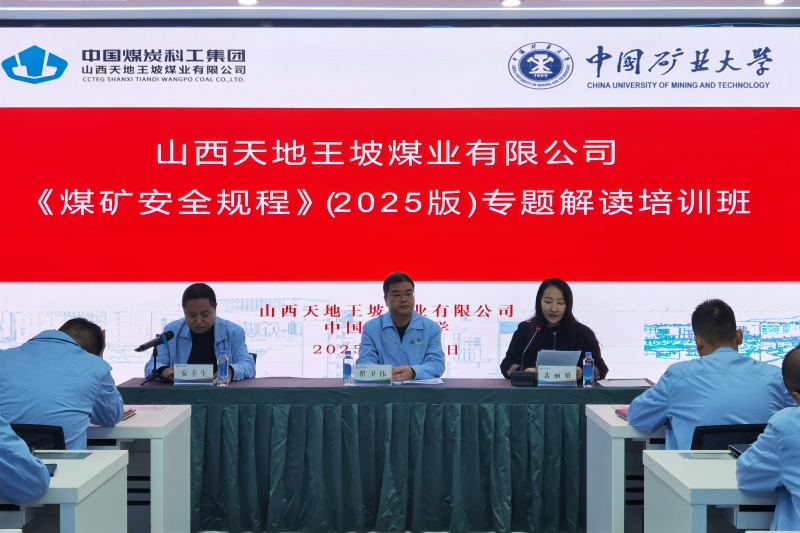 为助力企业精准把握新规要求、推动安全管理提质升级,11月5日,山西天地王坡煤业有限公司《煤矿安全规程》(2025版)专题解读培训班在企业本部正式开班。山西天地王坡煤业有限公司党委副书记、工会主席翟卫伟,中国矿业大学继续教育学院党委副书记兼副院长裴丽赟出席开班仪式,仪式由山西天地王坡煤业有限公司人力资源部(党委组织部)经理安幸生主持。