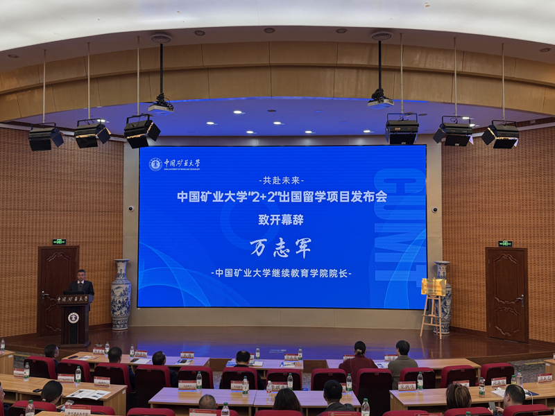 11月10日下午,中国矿业大学继续教育学院在文昌校区网络大讲堂举行“2+2”出国留学项目发布会。来自澳大利亚、新加坡、马来西亚的中国区项目代表,徐州片区高级中学负责人、校外教育机构代表和媒体人士等120余人参加会议。