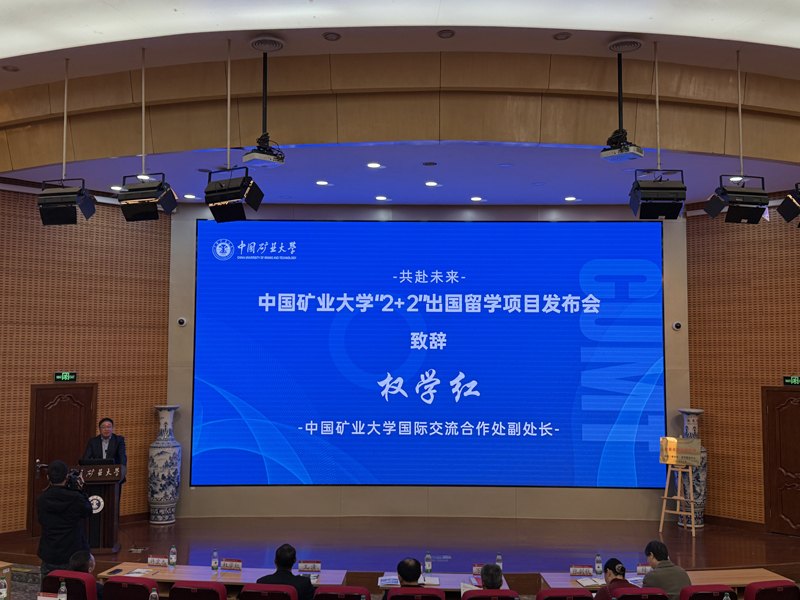 中国矿业大学国际交流合作处副处长权学红作了致辞。他介绍了学校在国际交流与合作方面的成果,指出学校已与英国、澳大利亚、新加坡等多个国家的优质院校建立稳定合作关系,并与中国(教育部)留学服务中心签署了全面战略合作协议,“2+2”出国留学项目正是这一合作框架下的重要成果。他表示,学校将持续深化国际交流合作,完善国际化人才培养体系,为推动教育对外开放、服务国家战略需求贡献矿大力量。