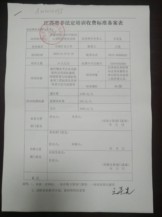 A202012295-沂沭泗局2020年防汛与水利管理培训班