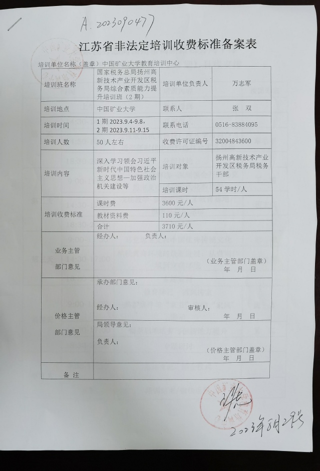 A2023090477-国家税务总局扬州高新技术产业开发区税务局综合素质能力提升培训班(2期)