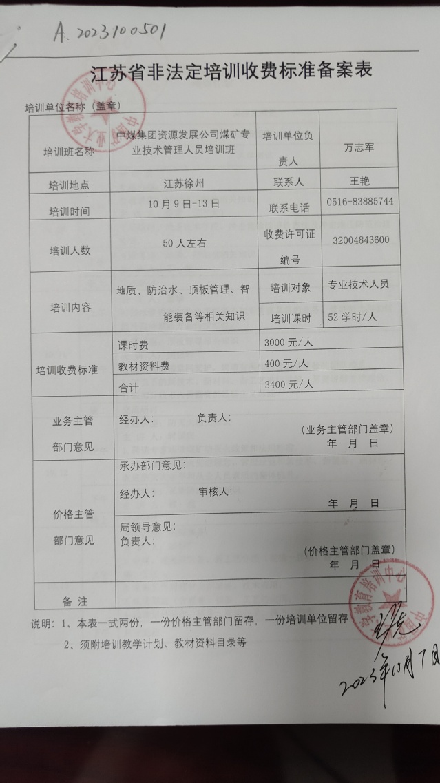 A2023100501-中煤集团资源发展公司煤矿专业技术管理人员培训班