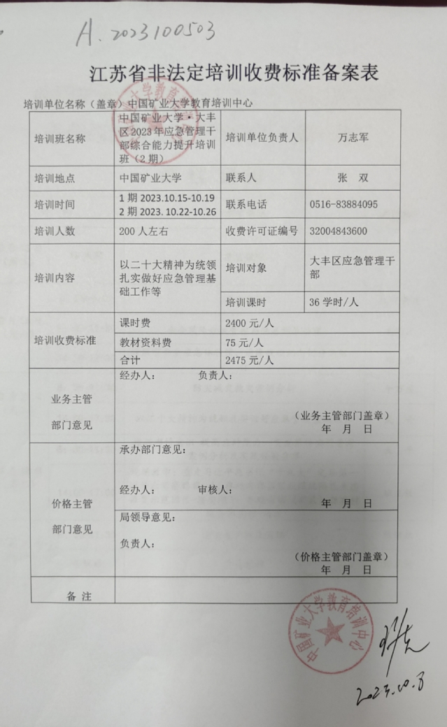 A2023100503-中国矿业大学 大丰区2023年应急管理干部综合能力提升培训班(2期)