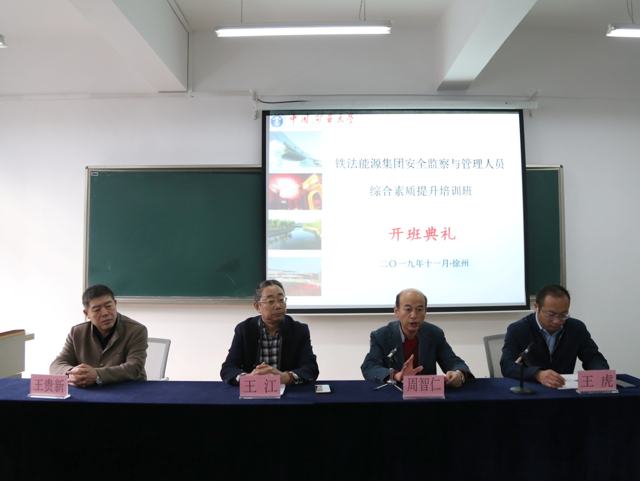 2019年11月12日上午,铁法能源集团安全监察与管理人员综合素质提升培训班在文昌校区举行开班典礼。铁法能源集团安监局综合处处长王江,辽北技师学院安培部支部书记王贵新,中国矿业大学职业与继续教育部党委书记周智仁出席典礼。