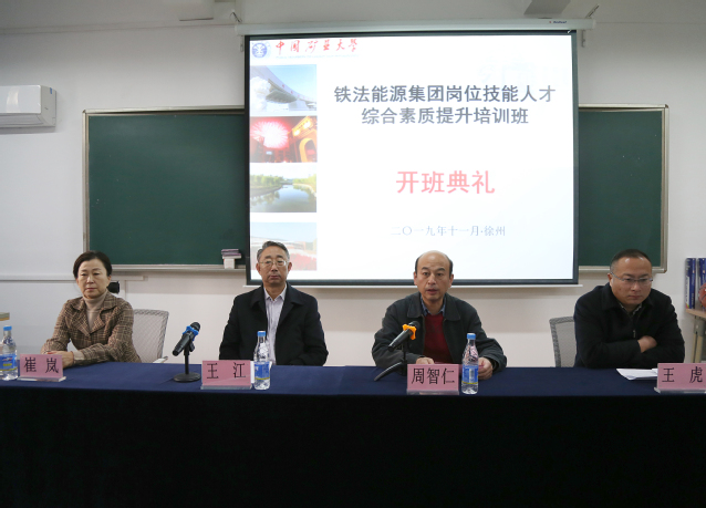 2019年11月19日上午,铁法能源集团岗位技能人才综合素质提升培训班在文昌校区举行开班典礼。铁法能源公司安监局综合处处长王江,中国矿业大学职业与继续教育部党委书记周智仁,教育培训中心副主任崔岚出席典礼。