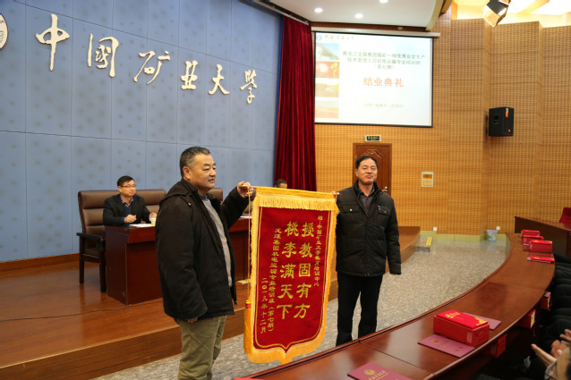 最后,学员代表向学校赠送了锦旗。来自龙煤集团鹤岗公司、鸡西公司、双鸭山公司、七台河公司、矿建公司、新疆公司的77名学员参加了结业典礼。