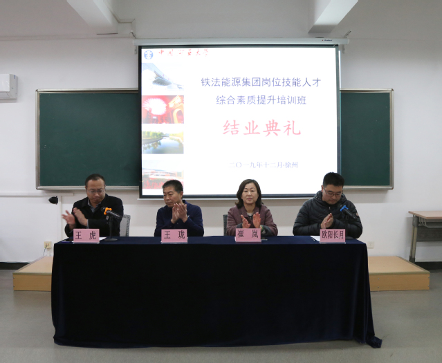 2019年12月18日上午,“铁法能源集团岗位技能人才综合素质提升培训班”结业典礼在文昌校区举行。辽北技师学院教师王珑,中国矿业大学教育培训中心副主任崔岚,办公室主任王虎出席结业典礼。