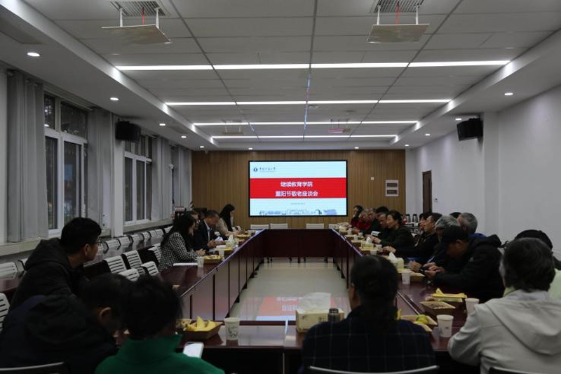 10月29日下午,继续教育学院在教五楼105室举行重阳节敬老座谈会,邀请学院老领导与退休教职工代表同庆佳节、共话发展。会议由院党委书记王清主持,学院领导万志军、许宏志、裴丽赟参加会议。