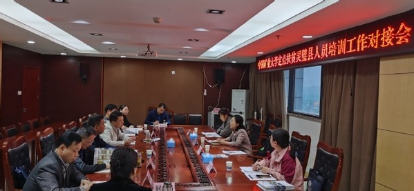 为尽快落实学校定点扶贫工作关于人员培训帮扶的具体任务,5月8日,教育培训中心副主任崔岚一行四人赴我校定点扶贫单位灵璧县对接相关工作。灵璧县副县长、我校科学技术研究院副院长闵涛,灵璧县县委组织部、应急管理局、人力资源和社会保障局、自然资源和规划局(林业局)、财政局、商务局、朝阳镇等有关部门负责同志参加会议。