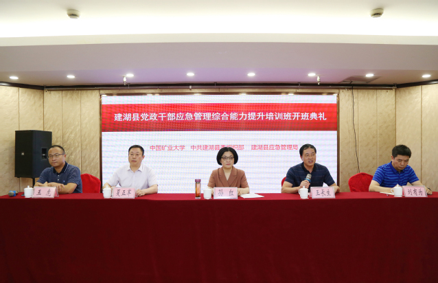 开班典礼上,王长生部长代表学校致辞,向建湖县委组织部、县应急管理局对矿大的信任和支持表示感谢,对出席开班典礼的各位领导和全体参训学员的到来表示欢迎。王部长简要介绍了学校的办学历史和发展现状,并从学科特色、师资力量、社会反馈等方面详细介绍了我校在应急管理培训领域的强大优势。