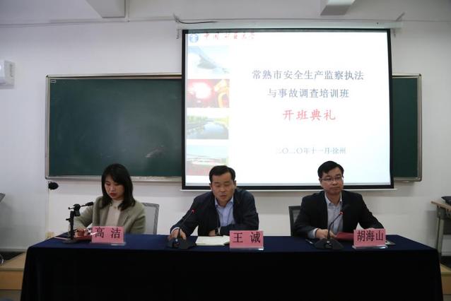 11月2日下午,由常熟市应急管理局委托我校举办的“常熟市安全生产监察执法与事故调查培训班(第二期)”在我校顺利开班。常熟市应急管理局党组成员、副局长王诚,中国矿业大学继续教育学院党委副书记、副院长胡海山出席开班典礼。