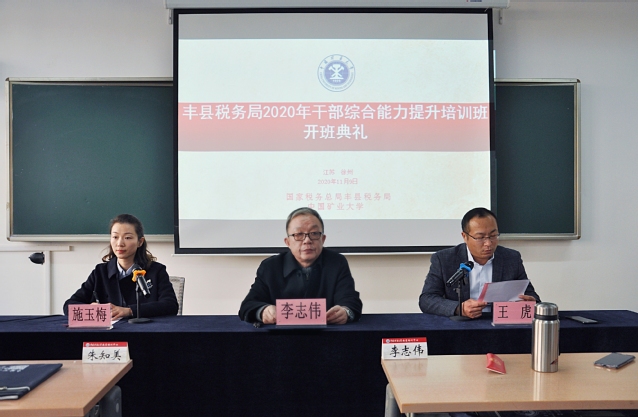 11月9日下午,丰县税务局2020年干部综合能力提升培训班(第一期)在我校举办开班仪式。国家税务总局丰县税务局党委委员、副局长李志伟,中国矿业大学继续教育学院副院长王虎出席仪式。